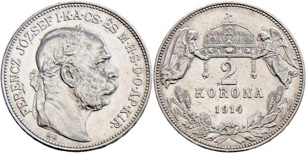 2 Koruna 1914 KB, 9.901g, nep.hr., nep.rysky, téměř R!