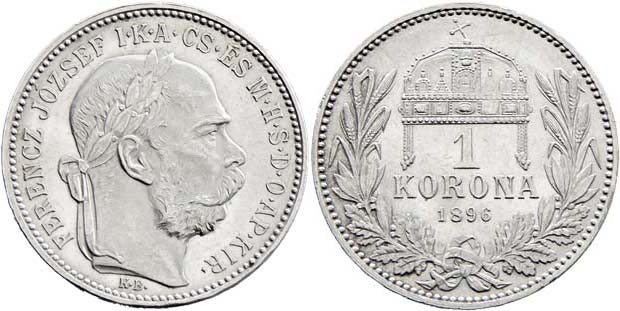 Koruna 1896 KB, 4.985g, nep.rysky R!