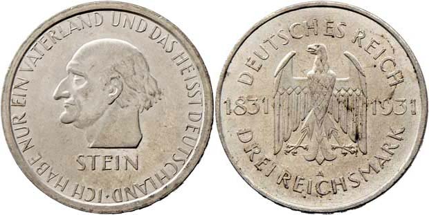 3 Marka 1931 A - Stein, KM.73, 14.917g, nep.hr., nep.rysky R!