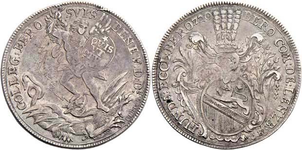1/2 Tolar 1720 - archanděl Michael, KM.4, 12.650g, dr.vada razidla, dr.hr., dr.rysky, pěkná patina R!