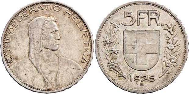 5 Frank 1925 B, KM.38, 24.993g, dr.hr., dr.rysky, patina