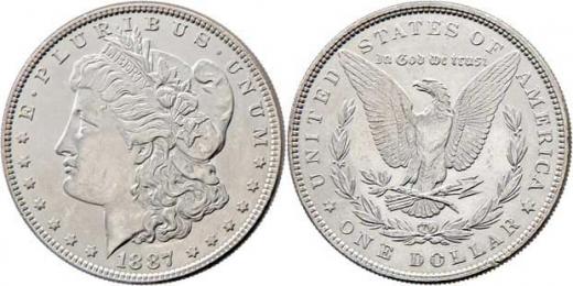 Dolar 1887 - Morgan, KM.110, 26.754g, nep.hr., nep.rysky, téměř