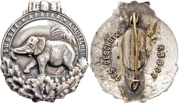 Pamětní odznak příslušníků býv.koloniálních jednotek, ND.3.01.11, Nim.189 (3307), číslo patentu "33992", postříbřený bronz 34x40 mm se sponou, patina