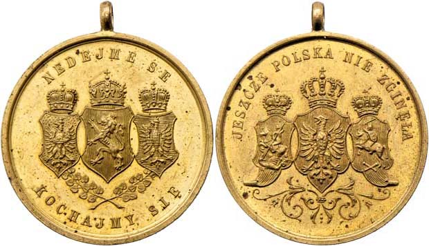Neff - medailka na česko-polské přátelství (1936) - znaky českých zemí, ratolesti, opis / znaky polských zemí, opis, mosaz 32 mm s pův.ouškem, BK.7, skvrnky