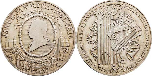 Čáka a Kožuch - na paměť Jakuba Jana Ryby 1985 - silueta, zámek, kostel, symboly, opis/hudeb.nástroje, monogram, opis, Ag 60mm, 105.757g, BK.5A (100ks) R!