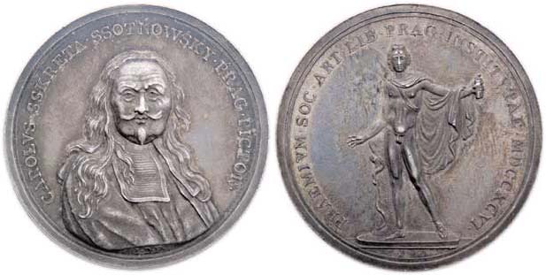 Donner - premie společnosti přátel umění 1796 - Karel Škréta mírně zleva, latinský opis / stojící Apolón, lat.opis, Ag 40mm, 43.667g, Don.3910, MZČ.108/1, pat.