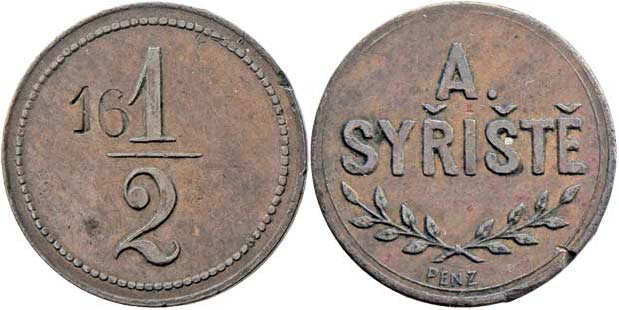 Syřiště A. - 1/2 (Krejcar ) b.l., měď 26 mm, dodatečně vyraženo číslo "16", hr., pěkná patina R!