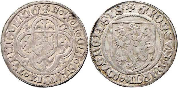 Groš kníž. (1412-1425), Freiberg, Krug.684/5, Rad.2, 2.904g, nep.nedor., pěkná patina, téměř
