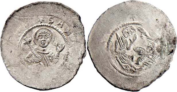 Denár, Ca.627, F.XVIII/16 (1722), 0.851g, opisy téměř nevyraženy, mírně exc., vada materiálu, vlas.rysky, patina R!