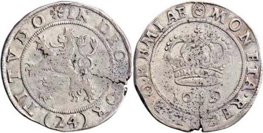 24 Krejcar 1619, Praha-Hübmer, J.2a, MKČ.568, 7.882g, naprasklý okraj, vady materiálu, nedor., patina