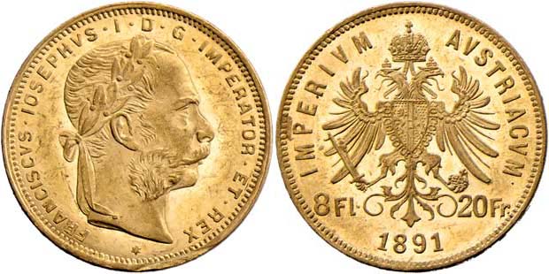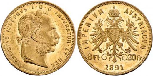 8 Zlatník 1891 (pouze 19.000 ks), 6.424g, vada materiálu, dr.hr., nep.rysky, téměř R!