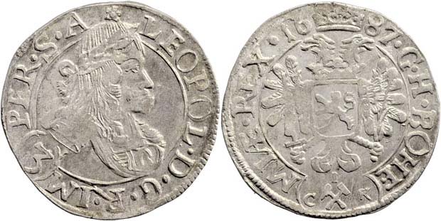 3 Krejcar 1687, K.Hora-Krahe, Nech.303, MKČ.1455, 1.860g, pěkná patina