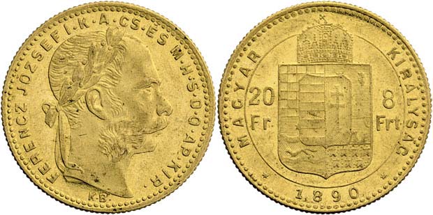 8 Zlatník 1890 KB - bez znaku Rijeky, 6.452g, nep.hr., nep.rysky