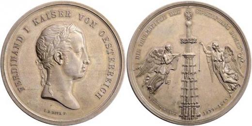 Roth - dokončení věže chrámu sv.Štěpána ve Vídni 1843 - poprsí zprava, opis/ vrchol věže mezi dvěma anděly, opis, Sign., měď 47mm, 47.782g, M.2605, Haus.91, pat.