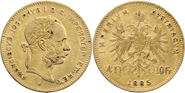 4 Zlatník 1885 (pouze 38.000 ks), 3.206g, dr.hr., vlas.rysky, patina R!