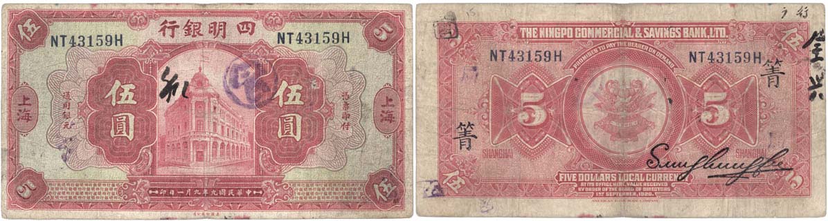 5 Dolar 1.9.1920 - Shanghai, Pick.541a