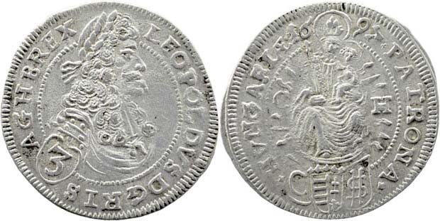 3 Krejcar 1697 CH, Bratislava-Hunger, Nech.1660, Husz.1478, 1.804g, pěkná patina, téměř