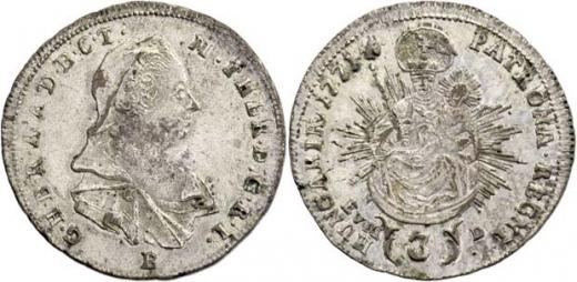 3 Krejcar 1771, B/EvM-D, N.96, 1.686g, nep.nedor., dr.vada razidla, mírně just., pěkná patina, téměř
