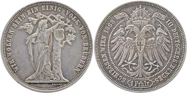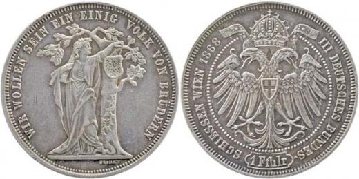 Tolar spolkový 1868 - III. německé spolkové střelby, 16.885g, dr.hr., nep.rysky, téměř R!