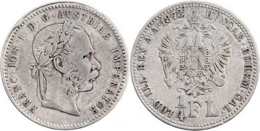 1/4 Zlatník 1873, 5.253g, dr.vady razidla, dr.hr., nep.rysky, patina RR!