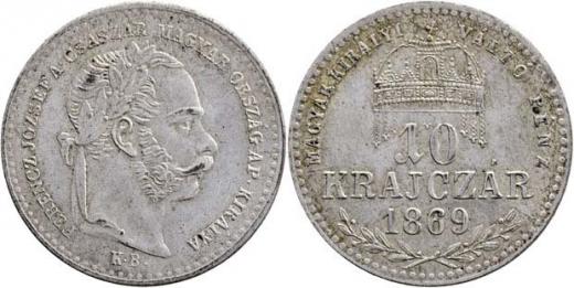 10 Krejcar 1869 KB - dlouhý opis, 1.664g, nep.vada razidla, nep.hr., téměř