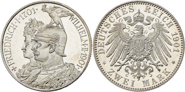 2 Marka 1901 - 200 let království, KM.525, 11.079g, ražba z leštěného razidla, nep.rysky