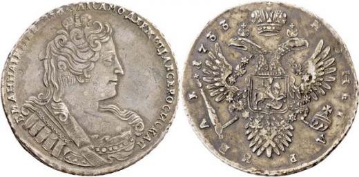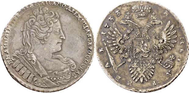 Rubl 1733 - portrét bez řádu, podobný jako Uzd.680 (VIII.A/a), KM.192.2, 25.851g, nep.vady materiálu, nep.nedor., nep.rysky, pěkná patina R!