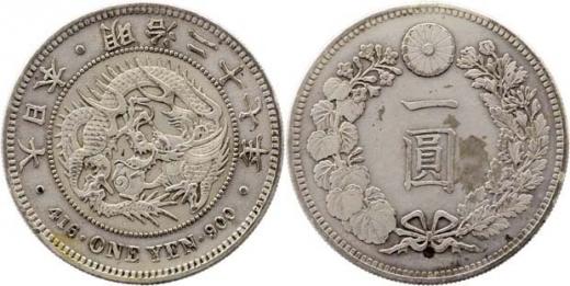1 Yen, rok 27 (= 1894), Y.A25.3, 26.936g, dr.hr., dr.rysky, skvrnky, lakovaný