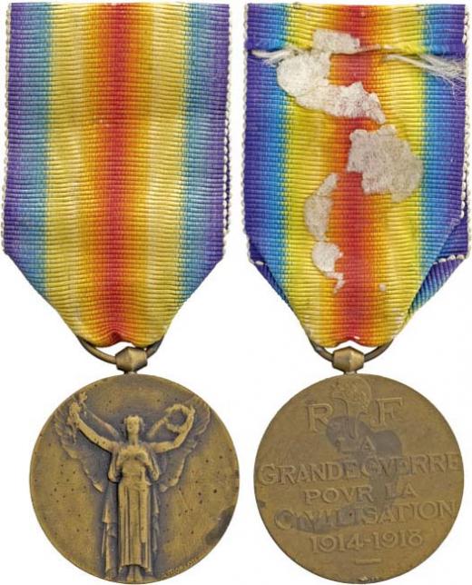Mezispojenecká medaile Vítězství 1914-1918, Kou.19, Laszlo.30, Sign.Morlon, původní stuha