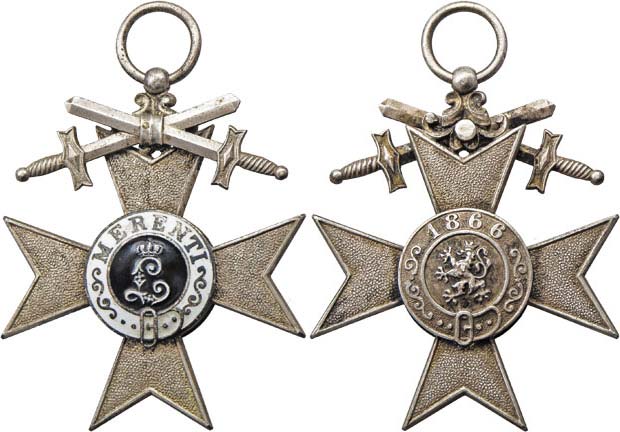 Vojenský zásl. kříž (založ. 1866) - typ 1913, BB.207, II.třída s meči, nepuncované smaltované stříbro, bez stuhy, dekret "Georg L. Anton Krauss 10.4.1916"