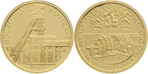 2500 Koruna (1/4 Unce) 2010 - Důl Michal v Ostravě, 7.825g, kapsle, etue, karta