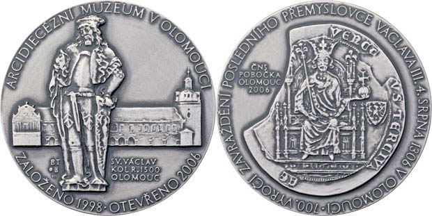 Teplý - 700 let zavraždění Václava III. - sv.Václav, arcidiecézní muzeum, písmo / pečeť Václava III., písmo, Sign., pat. Ag925, 60mm, 116.909g, 20ks, etue