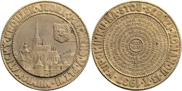 Walter - upomínka na stou schůzi pobočky 1937 - historické budovy, znak, opis / vročení, jména členů, opis, Sign., patinovaný bronz 40 mm, BK.1 (100 ks) R!