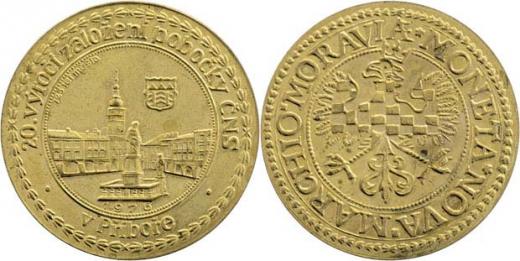 125 let města a 20 let pobočky ČNS v Příboře 1976 - náměstí, znak, opisy / moravská orlice a opis, Sign., zlacený bronz 33 mm, 6.834g, BK.2C, pouze 5ks RRR!