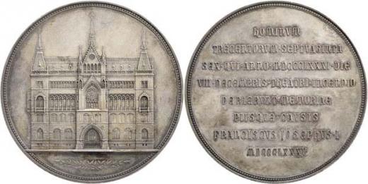 Na paměť 376 lidí zemřelých při požáru divadla 1885 - průčelí divadla, ratolest / 8-řádkový nápis, Sign., Ag 60mm, 79.862g, nep.hr., nep.rysky, patina, téměř