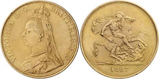 5 Libra 1887, KM.769 (pouze 54.000 ks), 39.897g, dobře opravená stopa po oušku, nep.hr., nep.rysky R!