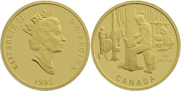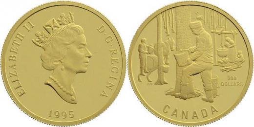 200 Dolar 1995 - sběr javorového sirupu, KM.265 (pouze 6.579 ks, 17.14g), zalepená kapsle, etue