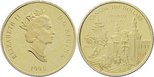 100 Dolar 1995 - 275 let pevnosti Louisbourg, KM.260, 13.330g, kapsle, etue