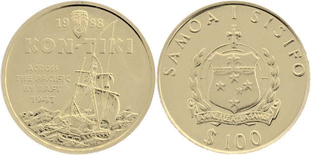 100 Tala 1990 - plavba voru Kon-Tiki, KM.77 (pouze 1.500 ks), 7.500g, kapsle