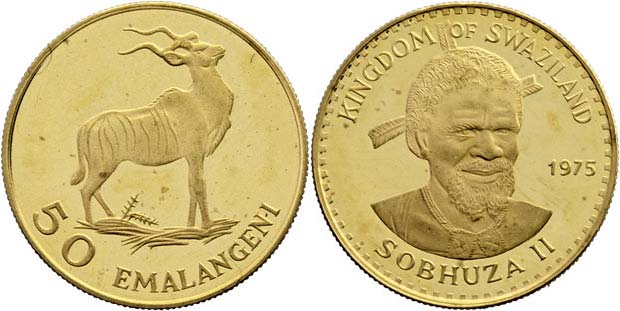 50 Emalangeni 1975 - 75.narozeniny krále, KM.26 (pouze 3.262 ks), 4.259g, kapsle R!