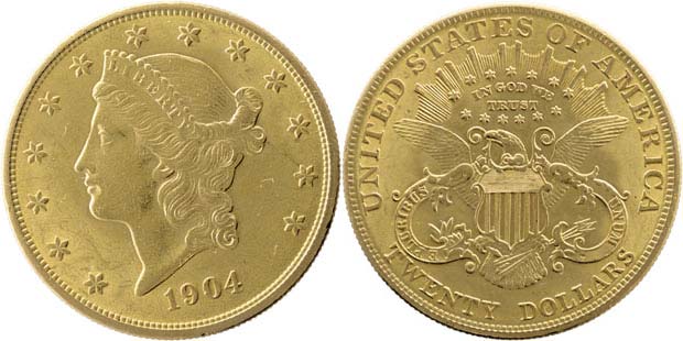 20 Dolar 1904 - hlava Liberty, KM.74.3, 33.440g, nep.hr., nep.rysky