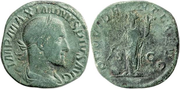 AE Sestercius, Rv:"PROVIDENTIA.AVG.S.C." stojící Providentia, S.2254, RIC.61 - mincovna Řím - ražba z let 235 - 236, krásná zelená patina