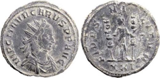 AE Antoninianus, Rv:"FIDES.MILITVM.", stojící Fides, podobný jako S.3300, RIC.102 - minc. Siscia - 1.dílna - blíže nedatován, patina
