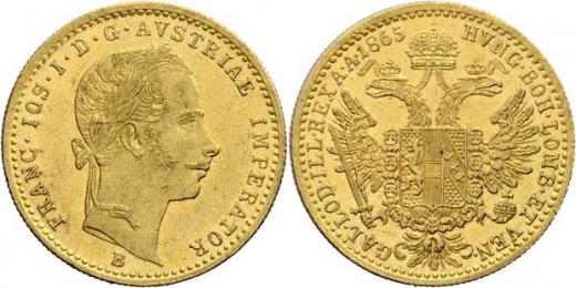 Dukát 1865 B, 3.488g, nep.hr., nep.rysky, patina R!