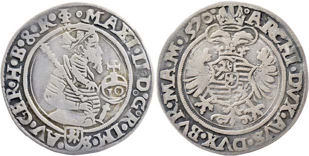 10 Krejcar 1570, Jáchymov-Geitzköfler, J.5b, MKČ.214, 3.937g, nedor., nep.dvojráz, pěkná patina R!
