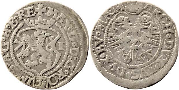 2 Krejcar 1571, Č.Budějovice-Gebhart, J.3c, MKČ.250, 1.441g, mírně exc., nep.nedor., patina