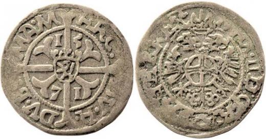 Krejcar 1571, Praha-Harder, J.2d, MKČ.183, 1.045g, vady razidla, nedor., pěkná patina