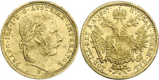 Dukát 1867 E, 3.467g, mírně zvlněný, nep.hr., nep.rysky R!