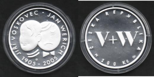 200 Kč 2005 - Voskovec a Werich, kapsle, etue, karta
