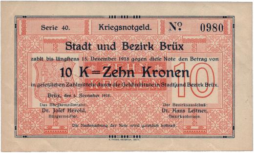 Brüx (Most) - 10 Koruna 5.11.1918, D-H.18/1.1p
